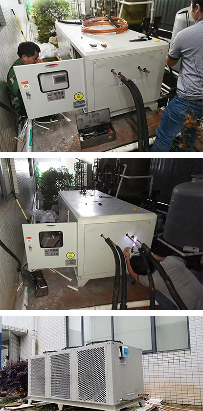 本方案為國內某高校實驗室使用的分體式冷水機,為了便于散熱,內外機分開放置。我方工程團隊上門安裝調試,后續使用過程順暢得到該科研師生團隊一致好評。